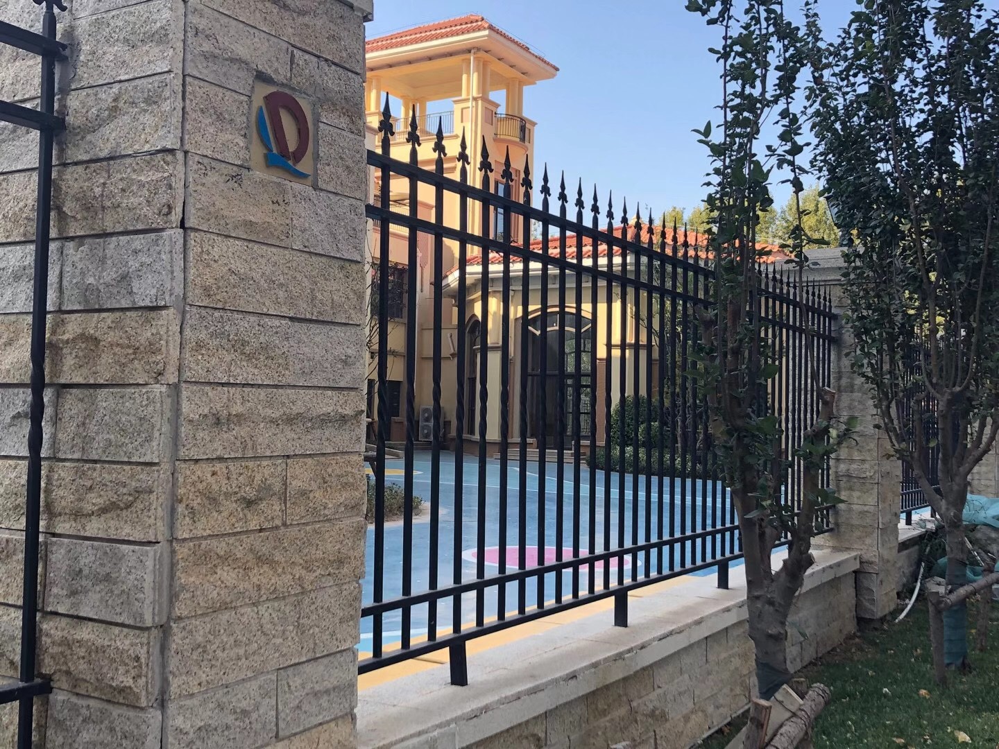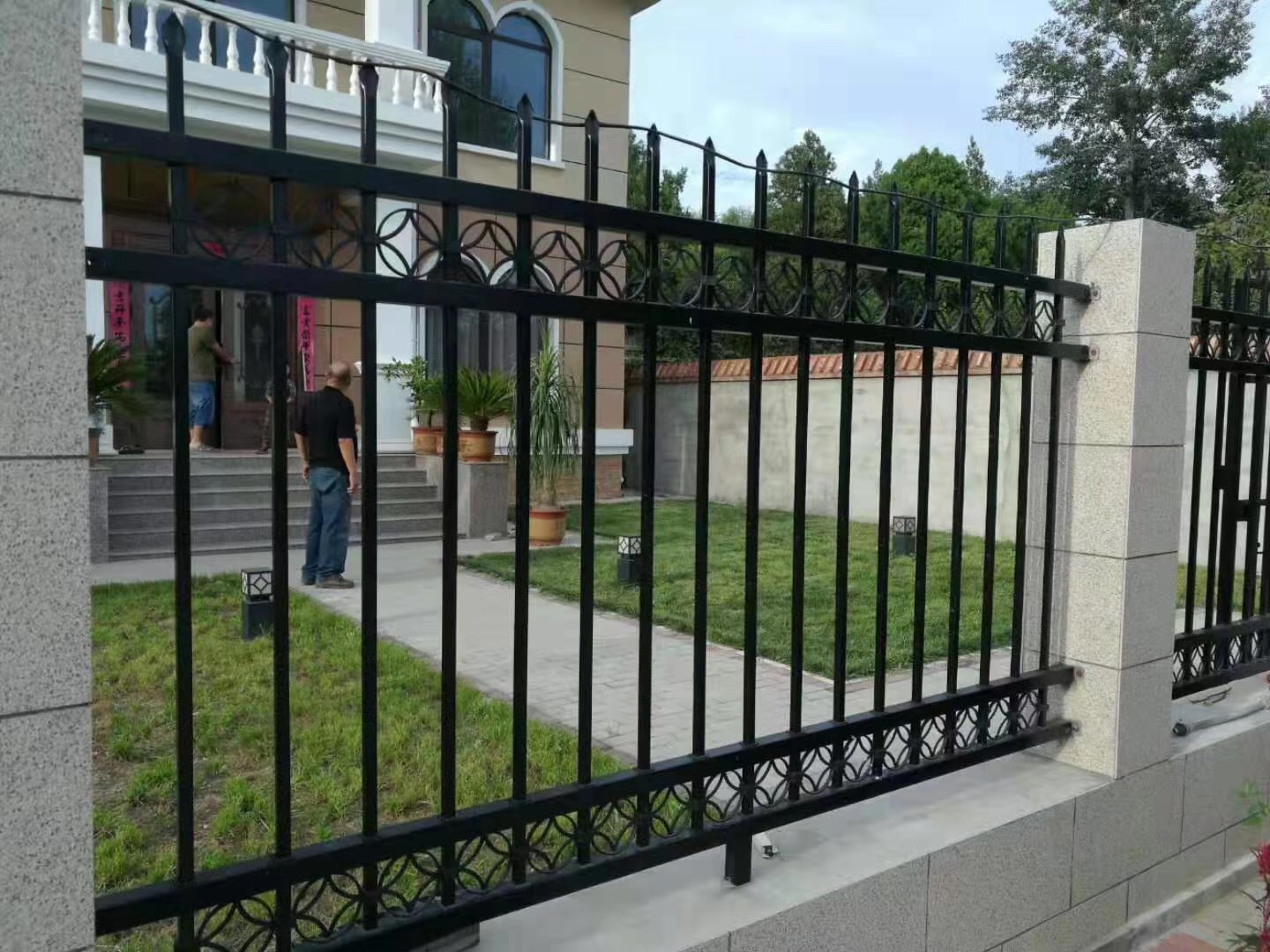 四根橫梁就是為了安裝裝飾花而設(shè)計(jì)的。鐵藝圍欄四橫梁兼顧了其他柵欄的防盜性能,藝術(shù)圍欄的美觀效果。D型柵欄被別墅小區(qū)的建設(shè)廣泛采用。建筑商在為別墅小區(qū)和高檔住宅區(qū)進(jìn)行圍墻設(shè)計(jì)的時(shí)候,最多的選擇了帶裝飾花的柵欄。